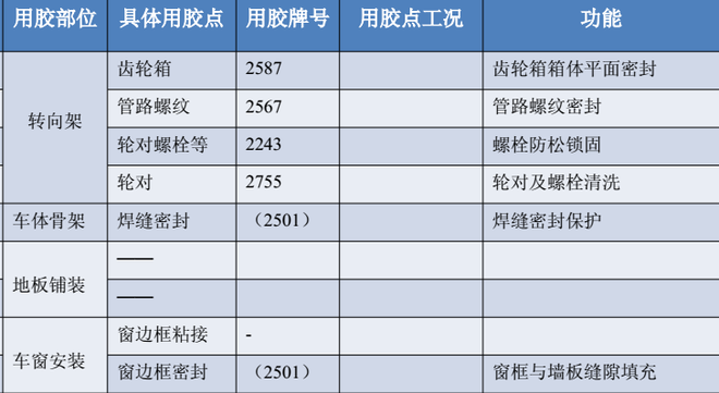 新能源汽车用胶明细