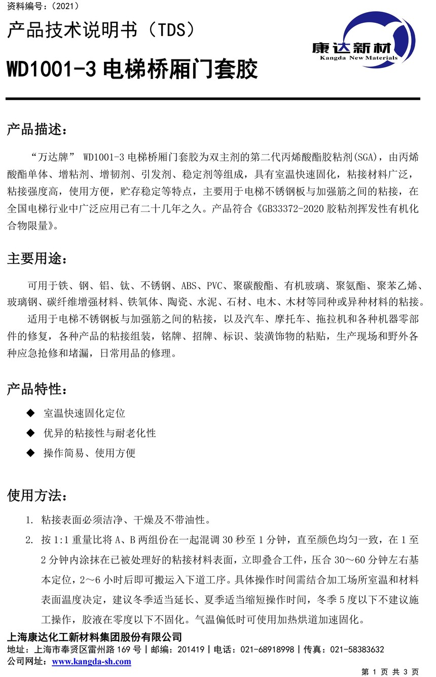 康达WD1001-3电梯桥厢门套胶丙烯酸酯结构胶不锈钢固体胶水