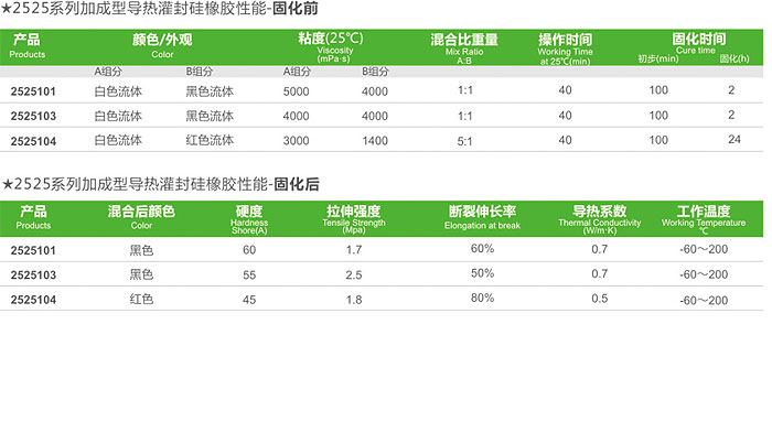 德邦@2525是一款双组分、可室温固化、加热快速固化的加成型导热硅橡胶、本产品对金属具有较好的附着力。耐高低温性能好,不开裂,不起皮,绝缘性能好。